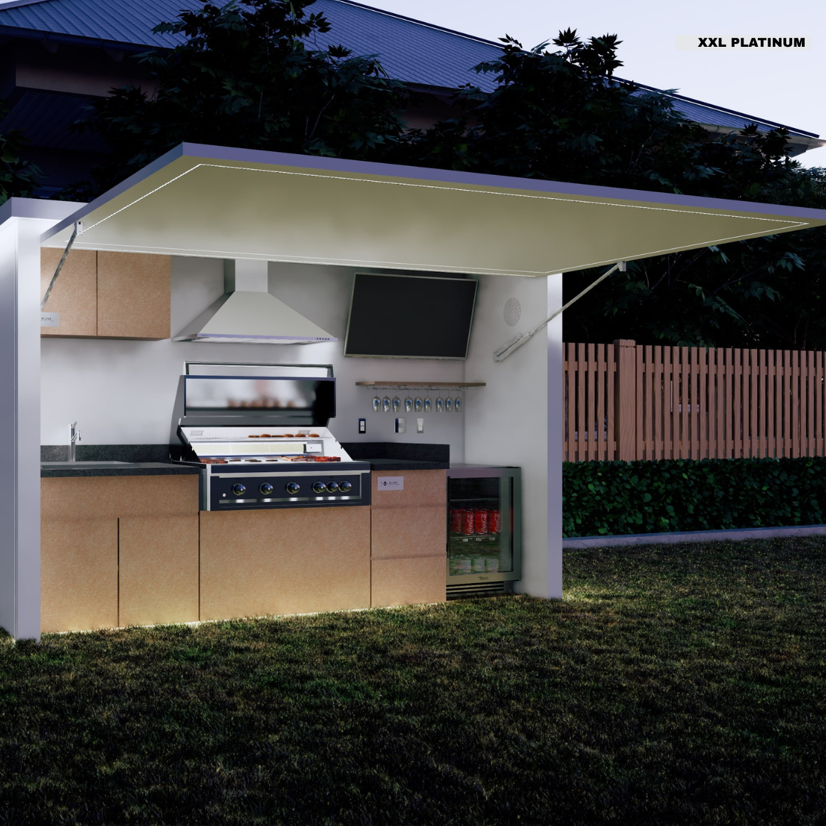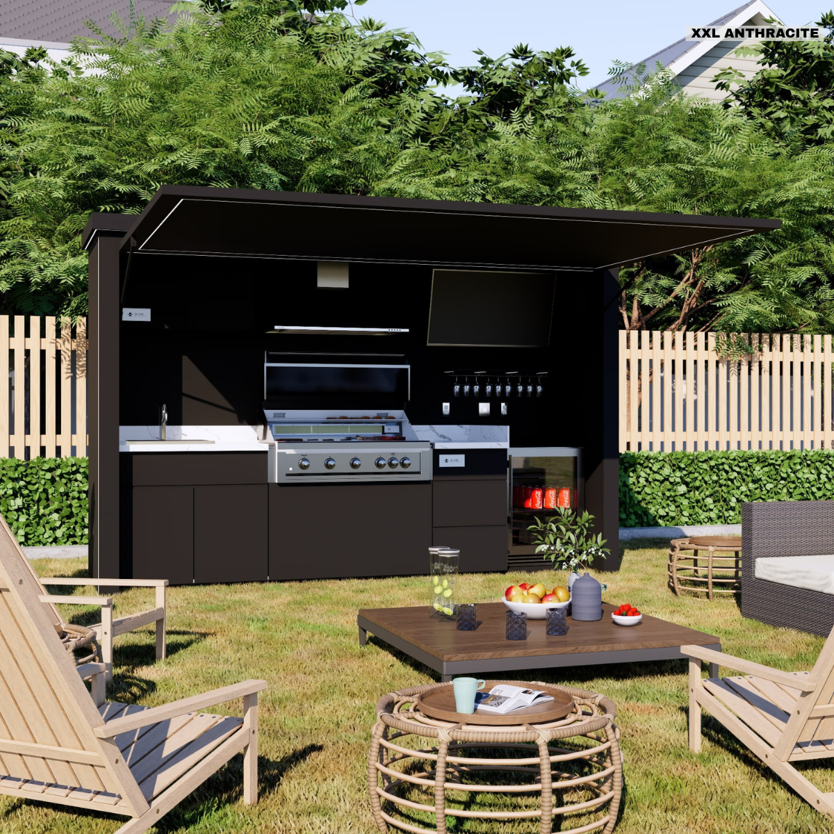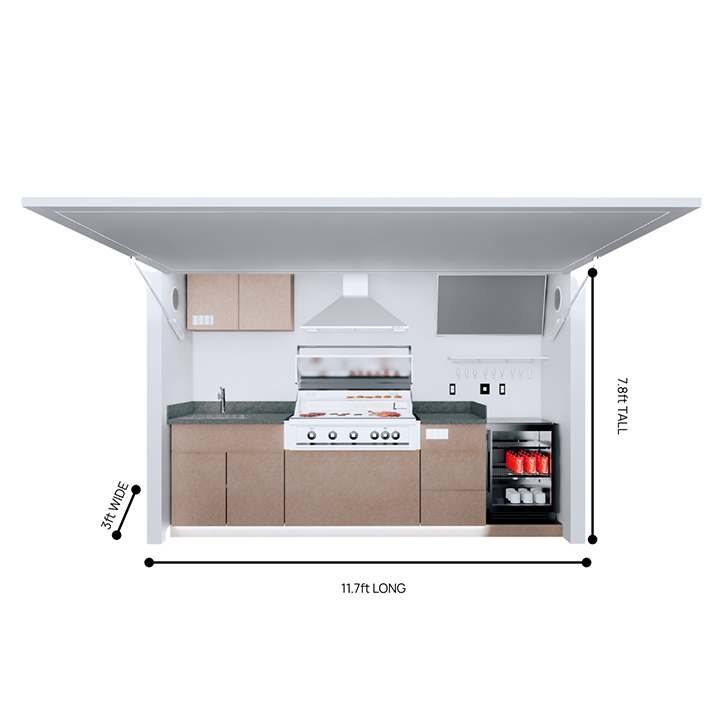 The XXL comes with the upgraded Smart TV, extra storage, and a sink/faucet to complete your outdoor kitchen experience.